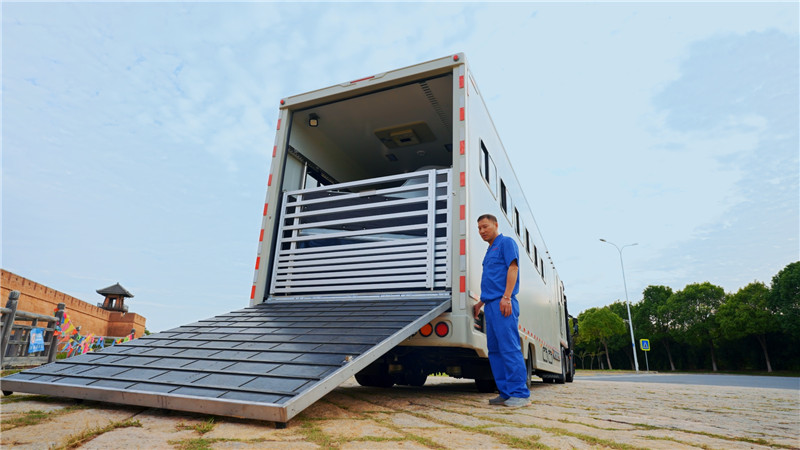 | 液壓門系統(tǒng) | 液壓后翻門,帶緊急手動(dòng)操作裝置,箱體尾部有液壓升降踏板,方便馬匹上下(內(nèi)部鋁合金),軍用品質(zhì)液壓系統(tǒng)(海格曼) |
