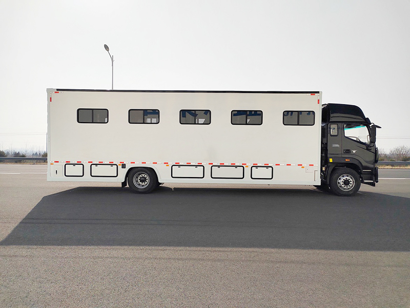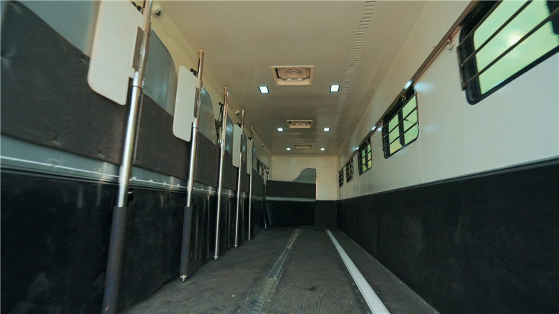| 側窗 | 房車級別雙層鋼化玻璃窗戶,馬區(qū)域尺寸500*1200,人員區(qū)域尺寸略小一些,茶色,含防止馬頭探出不銹鋼防護欄 |