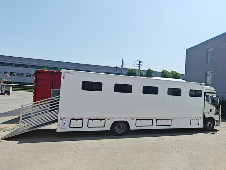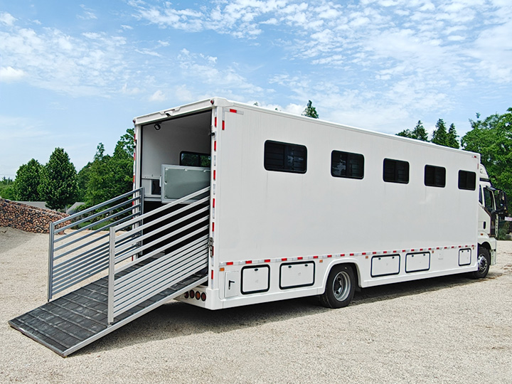 | 箱體骨架 | 天順牌,馬匹斜載,內外玻璃鋼,長度9.7米,房車級別設計,線條,燈光圓潤美觀,如果前部區(qū)域縮小,可以設計增加一個馬位 |