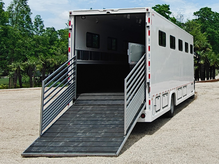 | 液壓門系統(tǒng) | 天順牌產品:液壓后翻門,采用延時電機,帶緊急手動操作裝置,箱體尾部有液壓升降踏板,方便馬匹上下(內部鋁合金),軍用品質液壓系統(tǒng)(海格曼),坡度平緩 |