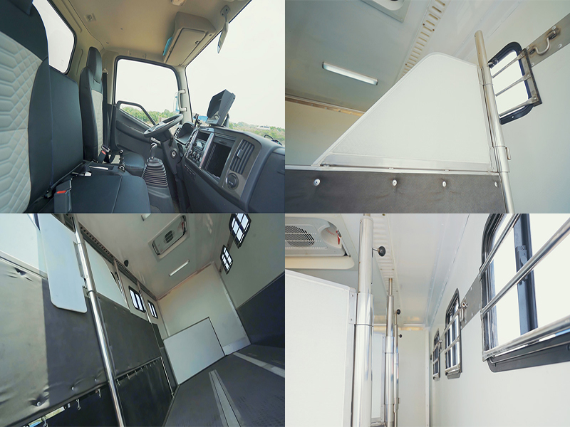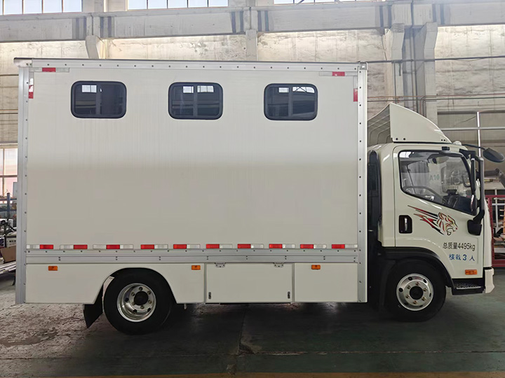 | 側(cè)窗 | 房車級別雙層亞克力窗戶,尺寸400*600,人員區(qū)域尺寸略小一些,茶色或者無色,含防止馬頭探出不銹鋼防護(hù)欄 |